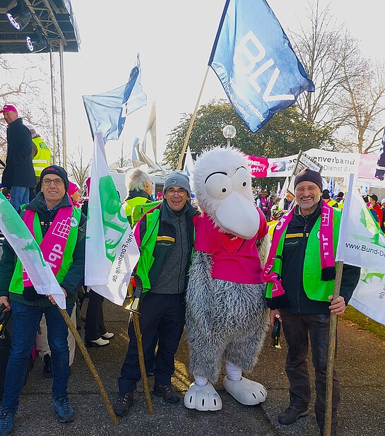 Jürgen Holzwarth, stellvertretender Landesvorsitzender: „Natürlich hätten wir uns über mehr Kolleginnen und Kollegen des BDF bei der Demo gefreut. Wir drei haben aber zumindest akustisch deren Fehlen ausgleichen können.“